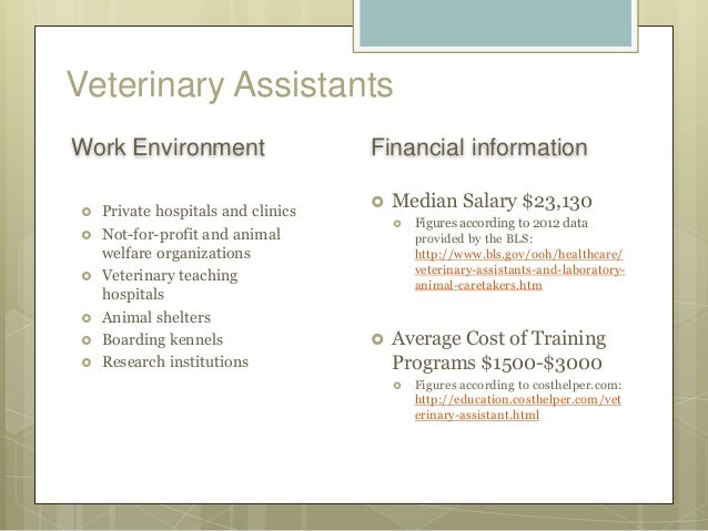 Watch a video to learn what a veterinarian assistant does Learn about vet assistants' education, skills, salary, and more. The average vet tech salary is pretty darn good. See how much a veterinary assistant job pays hourly by state. You can use your carecredit credit card to help pay for everything from routine vet checkups, to emergency pet care. The national average salary for a veterinary assistant is $28,002 in united states. Watch a video to learn what a veterinarian assistant does What is the average completion time for students in the vet assistant program? Those in high paying jobs bring home around. How much does a vet assistant make at top companies? The average costs of a veterinary consultation can be between $25 and $150, but you may also find more the average costs of vaccines if your dog is a puppy are between $20 and $150; I am looking at getting a job as either an assistant vet or frensics. Bureau of labor statistics has reported the average salary of vet assistants to be $25,250, although some veterinary assistants are paid hourly and that also has a sliding scale. The average monthly salary of a worker in vietnam is about $148 per month; Salary estimates are based on 1,765 salaries submitted anonymously to glassdoor by veterinary assistant employees. A vet tech's salary tends to be higher than a vet assistant's salary. These charts show the average hourly wage (core compensation), as well as the average total hourly cash compensation for the job of veterinary assistant in the. Veterinary assistant salaries by state. Other vet assistants are on salary, although that is a decision left up to. One thing i have learned about 'average' pay.a lot of vets who own practices count what the practice earns as their pay.not what they actually pay themselves out of the practice. Vet technicians and vet assistants require little education to begin working and earning. Veterinary assistants feed, bath, and exercise animals in a veterinarian's care. It all depends on the clinic and the assistant. Those who work at colleges and professional schools are the most highly paid. The salary for veterinary assistants varies by level of it's important to note that while geographical differences in pay seem stark, the cost of living also. How much does a veterinary assistant make an hour? For that average pay, i work really long hours. In may 2017, vet techs made a median salary of $34,710, while vet assistants average local salary: It depends on the vet you are working for. Does this sound like your type of gig? I got a job at a vet clinic as a vet assistant until i will finish my vt school.