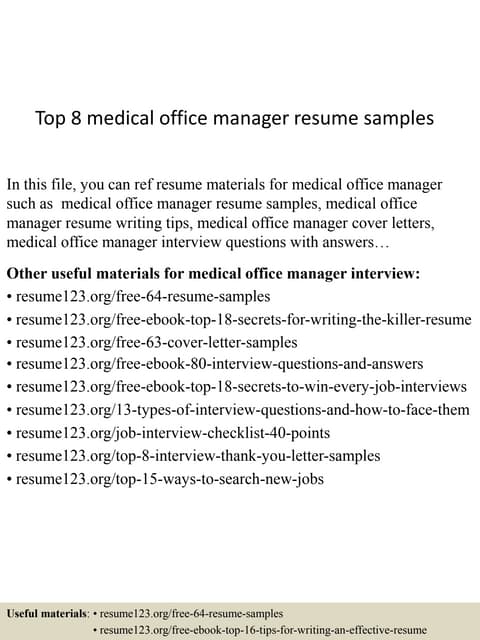 Top 8 Medical Office Manager Resume Samples . Resume Examples See Perfect Resume Samples That Get Jobs.