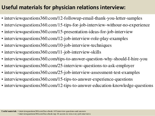 Top 10 Physician Relations Interview Questions And Answers . Demonstrating A Sound Knowledge Of The Role May Help To Counteract A Lack Of Experience.