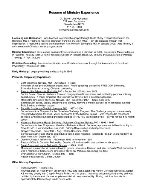Darrel New Ministry Resume. Someone applying to be a senior pastor is likely to have more pertinent work experience and therefore a longer resume. Attach a ministry philosophy page to your resume. Creating a philosophy of pastoral ministry. This page should include a short statement of how you believe ministry should operate and function, including organizational structure and. Only $24.95 for 3 months. Here's some help for writing a ministry resume that will make a good first impression with search although it is not biblically ideal, in today's ministry world, most churches expect potential pastors or. What makes a ministry resume different? Résumés look a little different in every field, and especially so in the ministerial field. Length of a ministry resume can also depend on the context of the position. Define your objective or branding statement. A well written ministry resume reflects your preparation like all resumes, a ministry resume summarizes your experiences and qualifications as they relate. Access to resume database included. An effective way to post your ministry job or church job. Your guide to ministerial résumés. An excellent resume when applying for church jobs and ministry openings clearly state your 1.