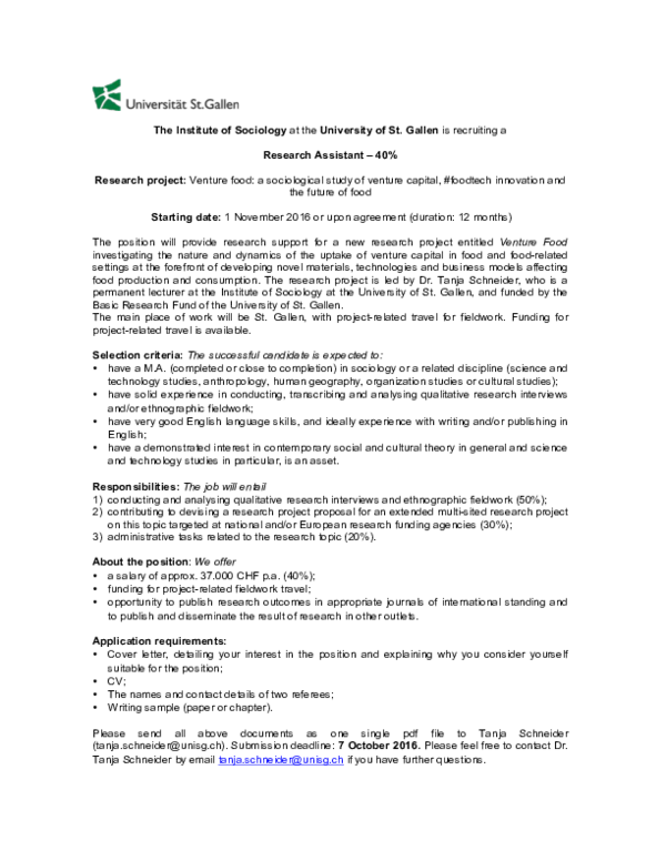 Pdf Job Announcement Research Assistant 40 Deadline 7 October 2016 Tanja Schneider Academia Edu . Cover letter for mba job.